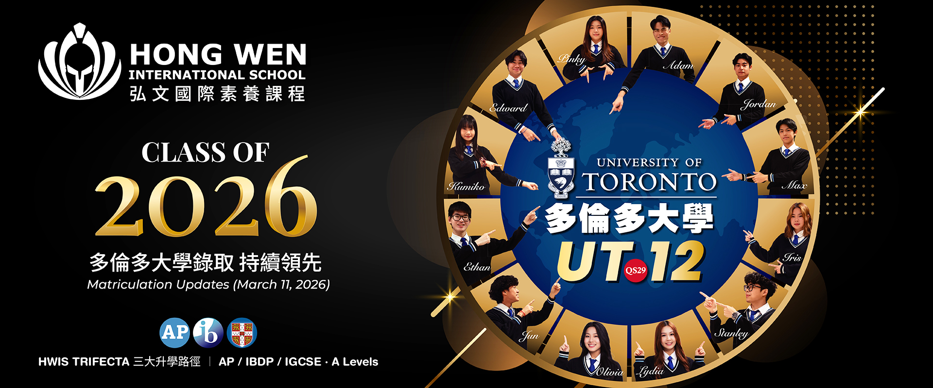 專為七至十二年級學生打造的弘文國際素養課程,除提供國際文憑大學預科課程(IBDP),更開設三十六門大學先修課程(AP)。我們著重培養批判思維、全球視野與卓越學術力,幫助學生進入世界頂尖大學,並在國際舞台上脫穎而出。