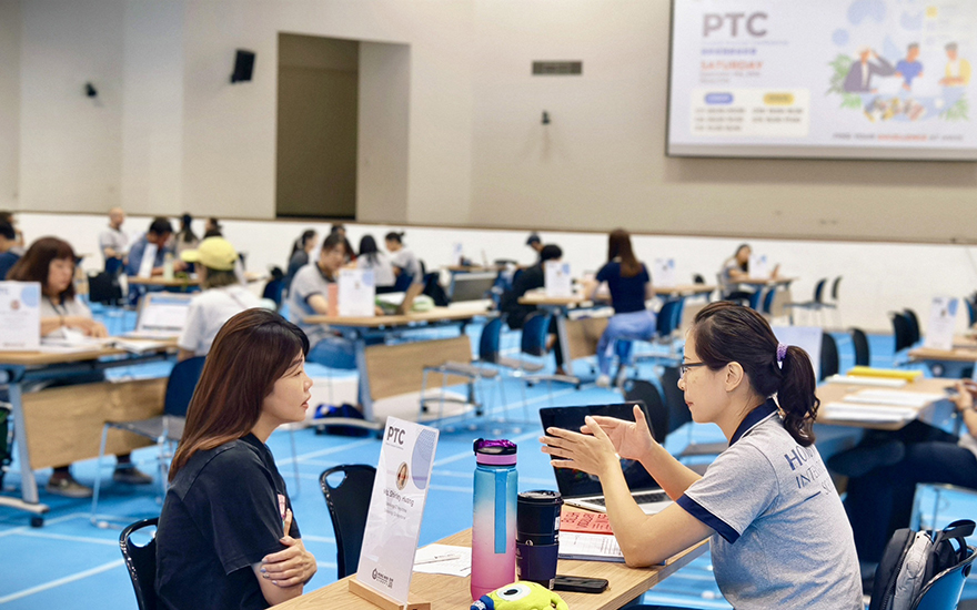 Last Saturday, HWIS hosted a successful Parent-Teacher Conference (PTC) with over 170 parents and families in attendance. During the event, parents had the opportunity to receive individualized analyses of their child’s in-class progress, learning status, and results.